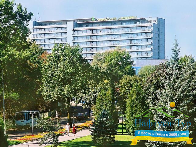 Розташування санаторія Алмаз: 12 хв. пішки до бювету №1, 4 хв. пішки до офісу «НАФТУСЯ-ТУР»