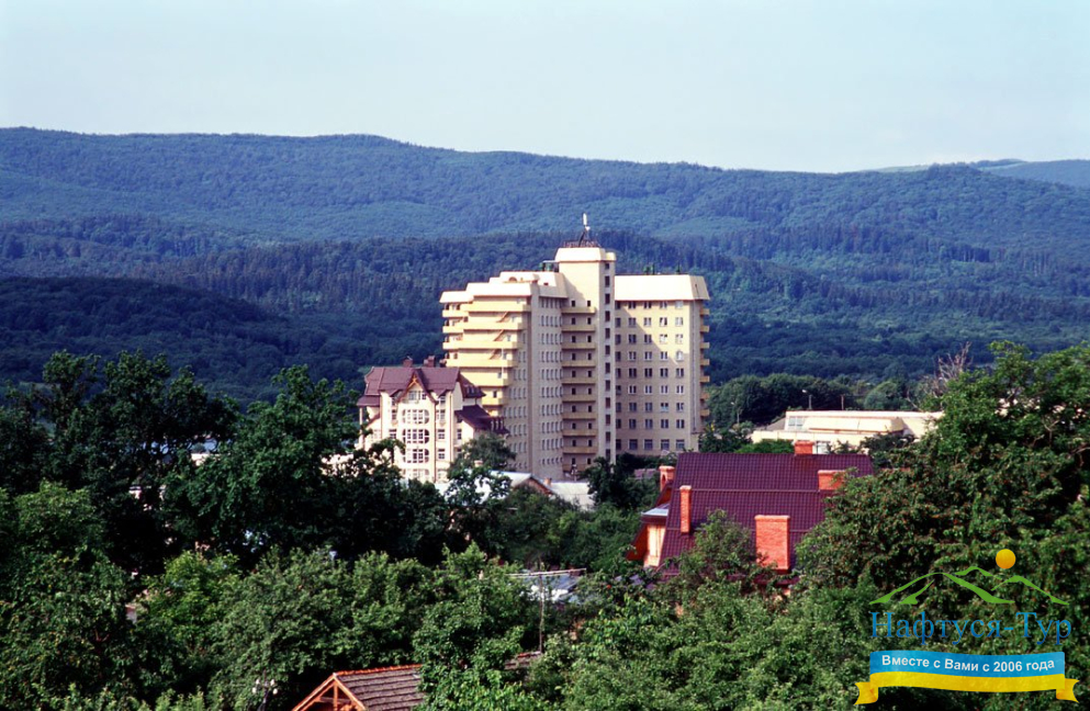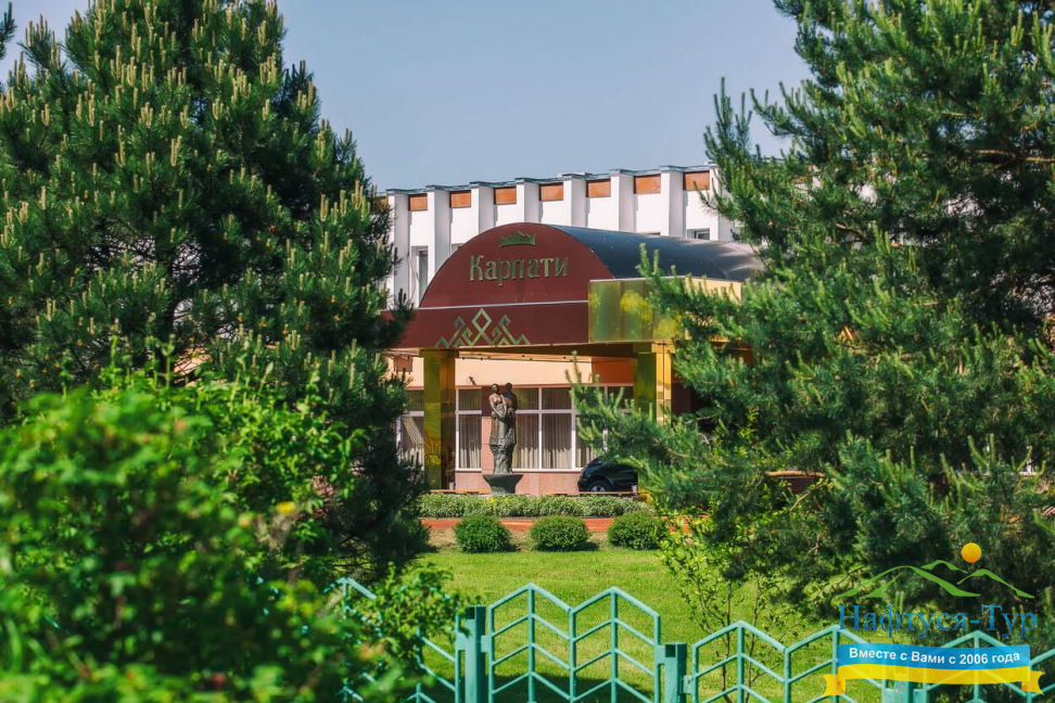 Розташування санаторія «Карпати»: 20 хв. пішки до бювету №1, 20 хв. пішки до офісу «Нафтуся-ТУР»