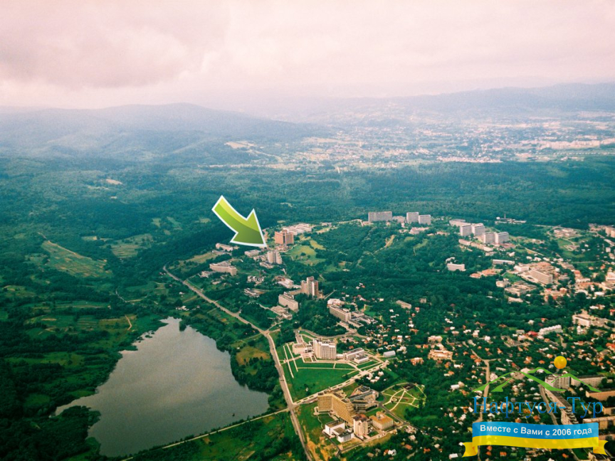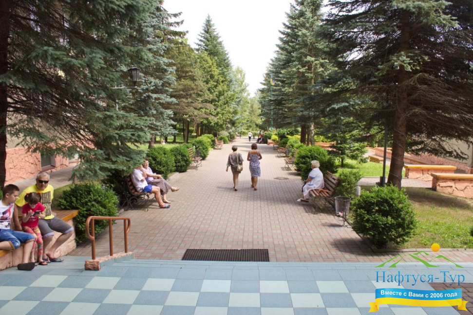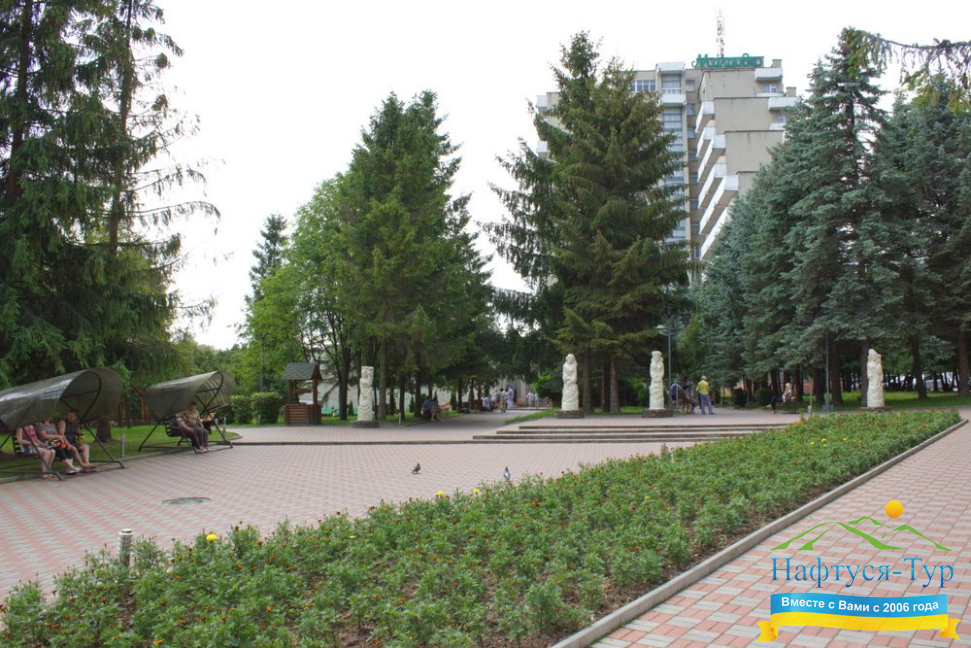 Розташування санаторія Молдова: 10 хв. пішки до бювету №1, 12 хв. пішки до офісу «НАФТУСЯ-ТУР»