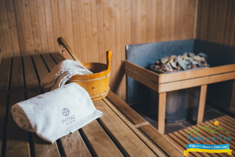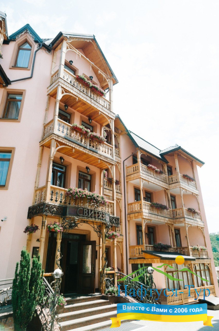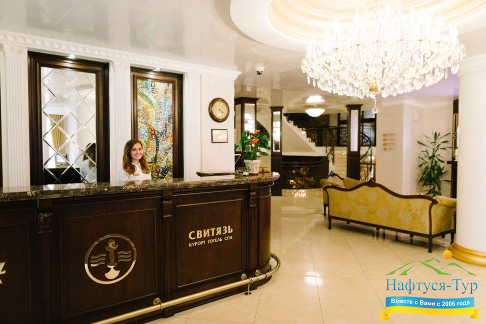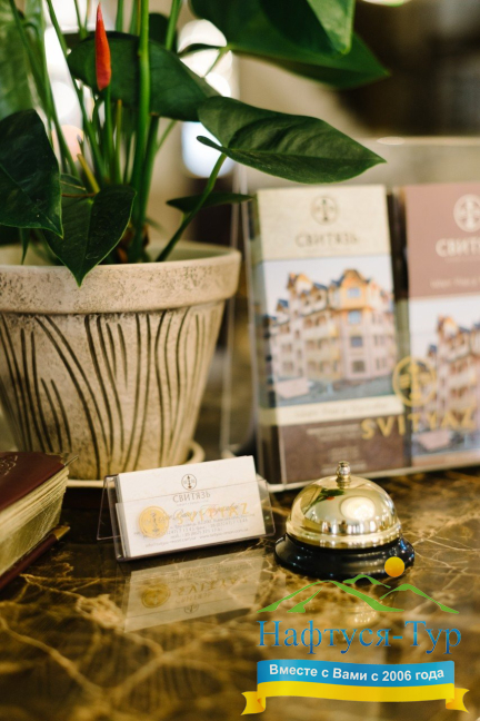 САНАТОРІЙ «СВІТЯЗЬ» має повне право вважатися універсальним закладом для відпочинку в Трускавці. У ньому в рівній мірі комфортно сім'ям з дітьми, романтичним парам, компаніям друзів. Невелика місткість закладу (56 номерів), гарантує особливий затишок. Безумовною гордістю «Світязя» є його СПА-центр, де представлені практично всі лазневі культури, де вам запропонують безліч оздоровчих і лікувальних програм, в тому числі з використанням перлинних ванн з «бішофіту» і мінералами Мертвого моря, сірководневих ванн, озокерито-парафінотерапії. Відпочинок в даному санаторії – це максимальне розмаїття можливостей. Наприклад, ресторан здравниці пропонує меню європейських і української кухні, дієтичне, комплексне меню або харчування по системі «шведський стіл», за вашим вибором страви можуть готуватися в духовці, на пару, на грилі. Додамо, що «room service» працює цілодобово. Крім названого вище, до переліку інфраструктури санаторію входять дитяча ігрова кімната, басейн, фітнес-зал, лобі-бар і багато іншого. На всій території оздоровниці працює безкоштовний Wi-Fi Інтернет. Для тих, хто відправляється в «Світязь» на відпочинок з дітьми, особливо скажемо про можливість установки в номері дитячого ліжка, стільчика для годування, замовлення послуг няні.