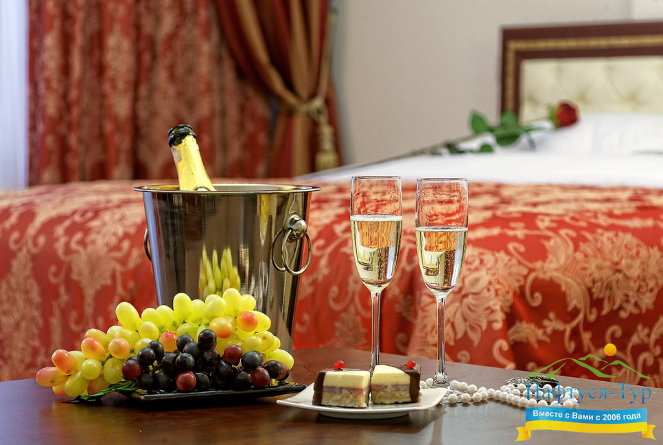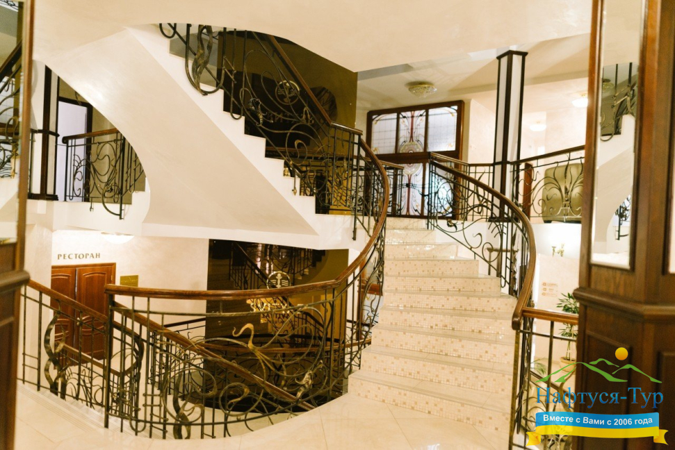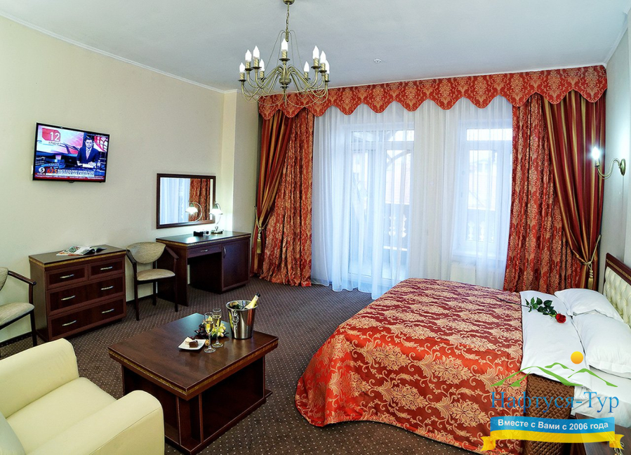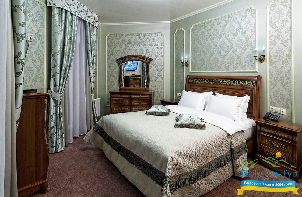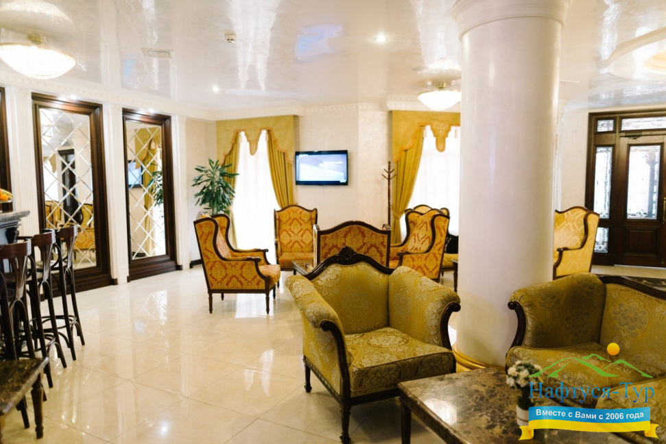 Отель- спа расположен в самом центре, 100 метров от бювета, обслуживание и чистота супер, балконы в номере, мини-бары и все такое. Есть бассейн, джакузи, сауны, обслуживание в номерах и процедуры в спа-центре( по назначению врача- платно).